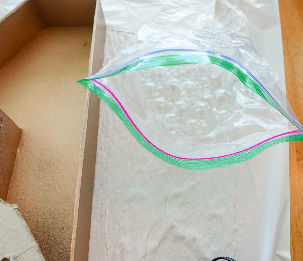 2. Remove the top of the number or letter and set aside.  Next, remove any loose cardboard from the center of the number and set aside.  You’ll need this again later.