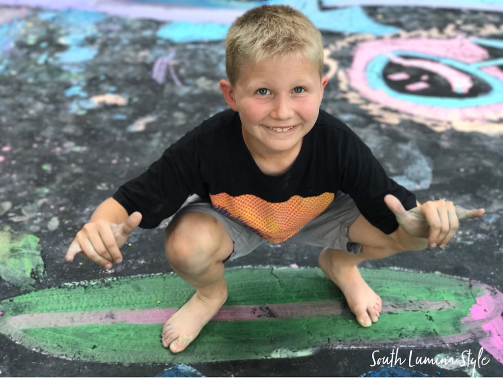 This is a favorite at our house. DIY chalk paint… the easy way. We usually have a stash of chalk around the garage to use, but if not we usually get a big assorted pack from somewhere like Michaels, Target or Walmart.