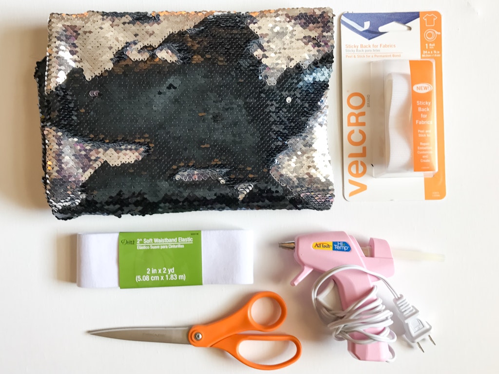 Which is all a really long way of saying it cut out a number of steps for us. 🙂 We originally were planning on sewing ours as well but quickly figured out that you have to remove a line of sequins where you plan to sew. In the interest of keeping it simple, decided the good ol’ glue gun would work well too. Sewing would absolutely work too if you have a little extra time.