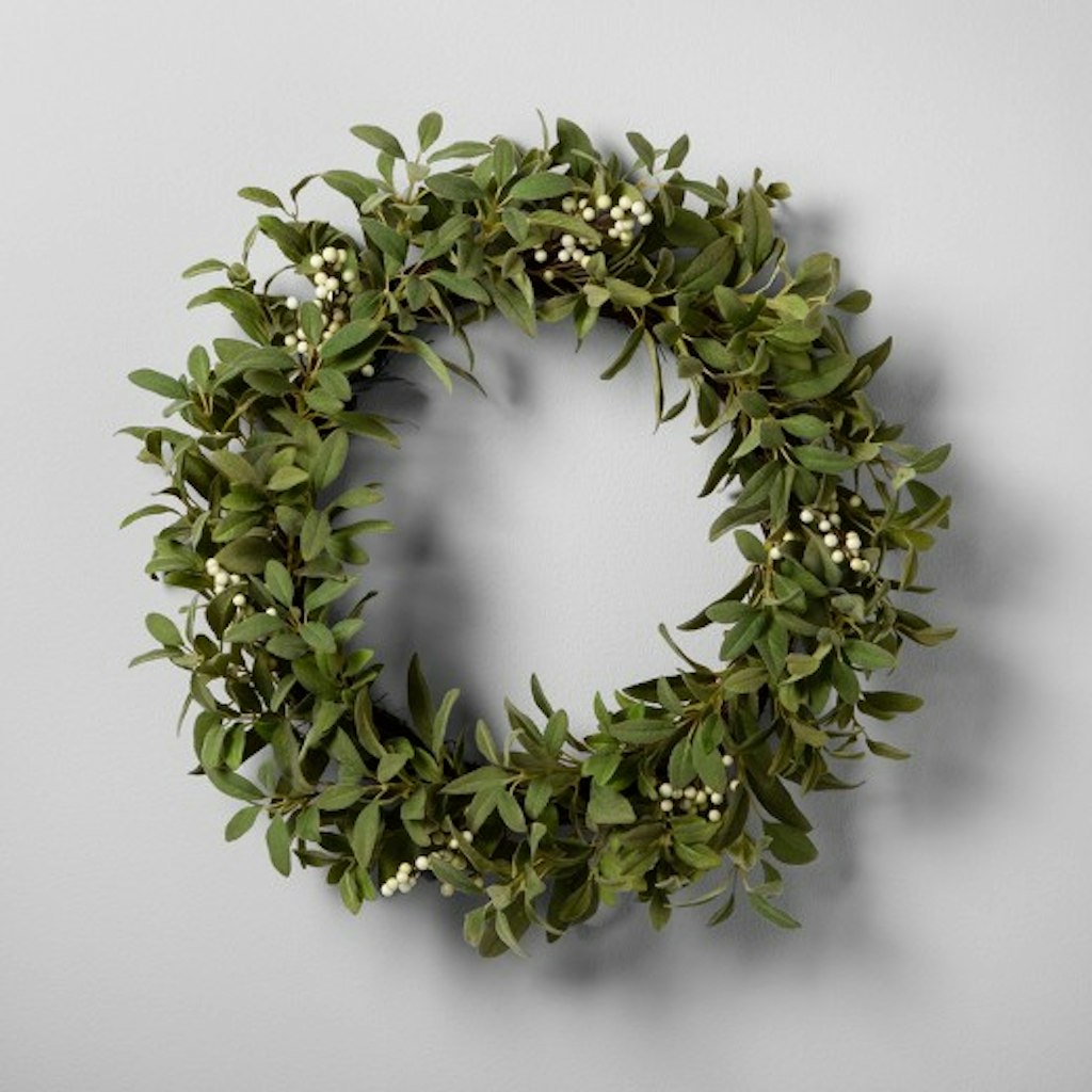 Artificial Lamb Ear & White Berry Wreath 24″ $34.99