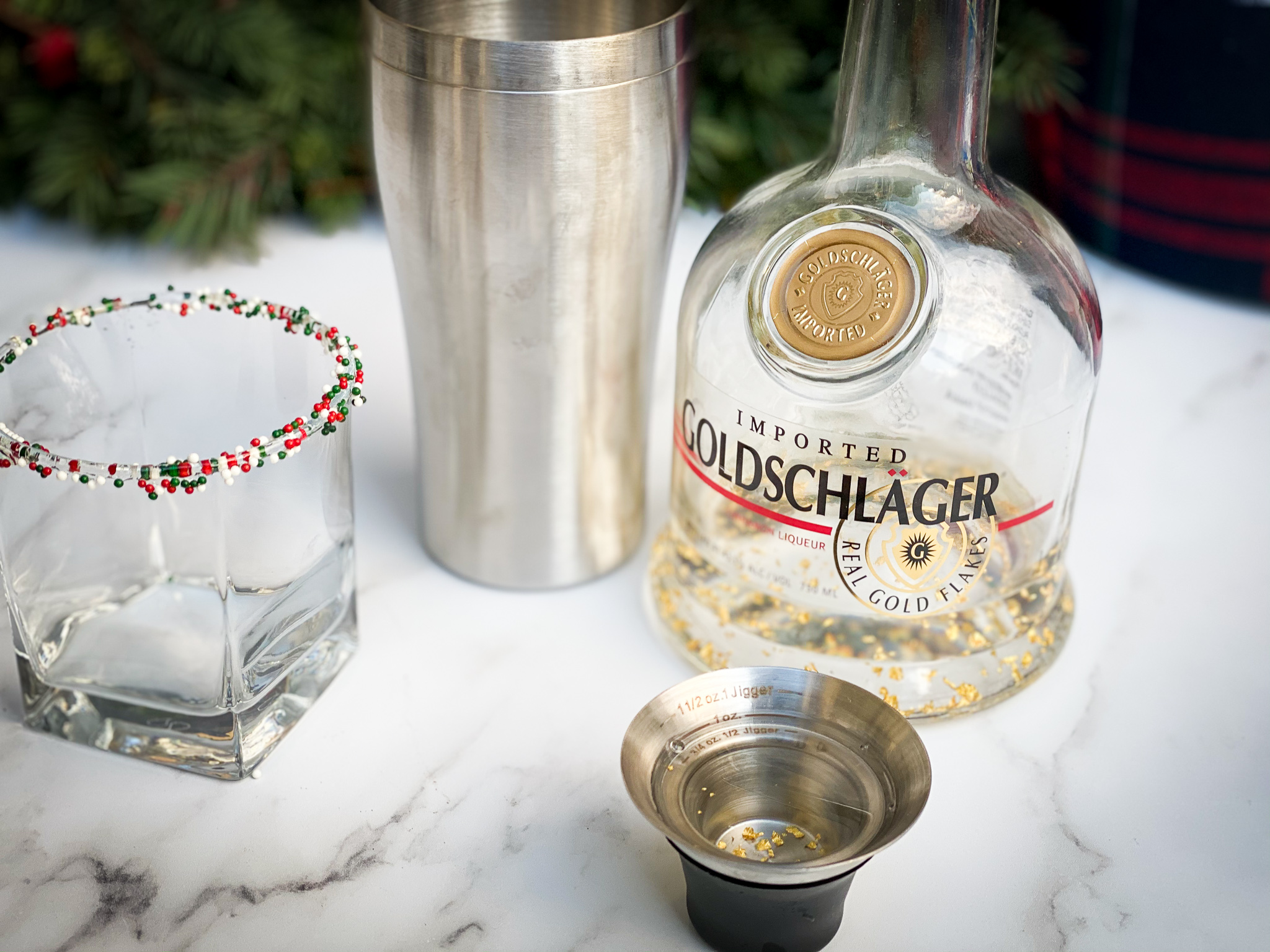 - Agave syrup and Christmas sprinkles for glass rims