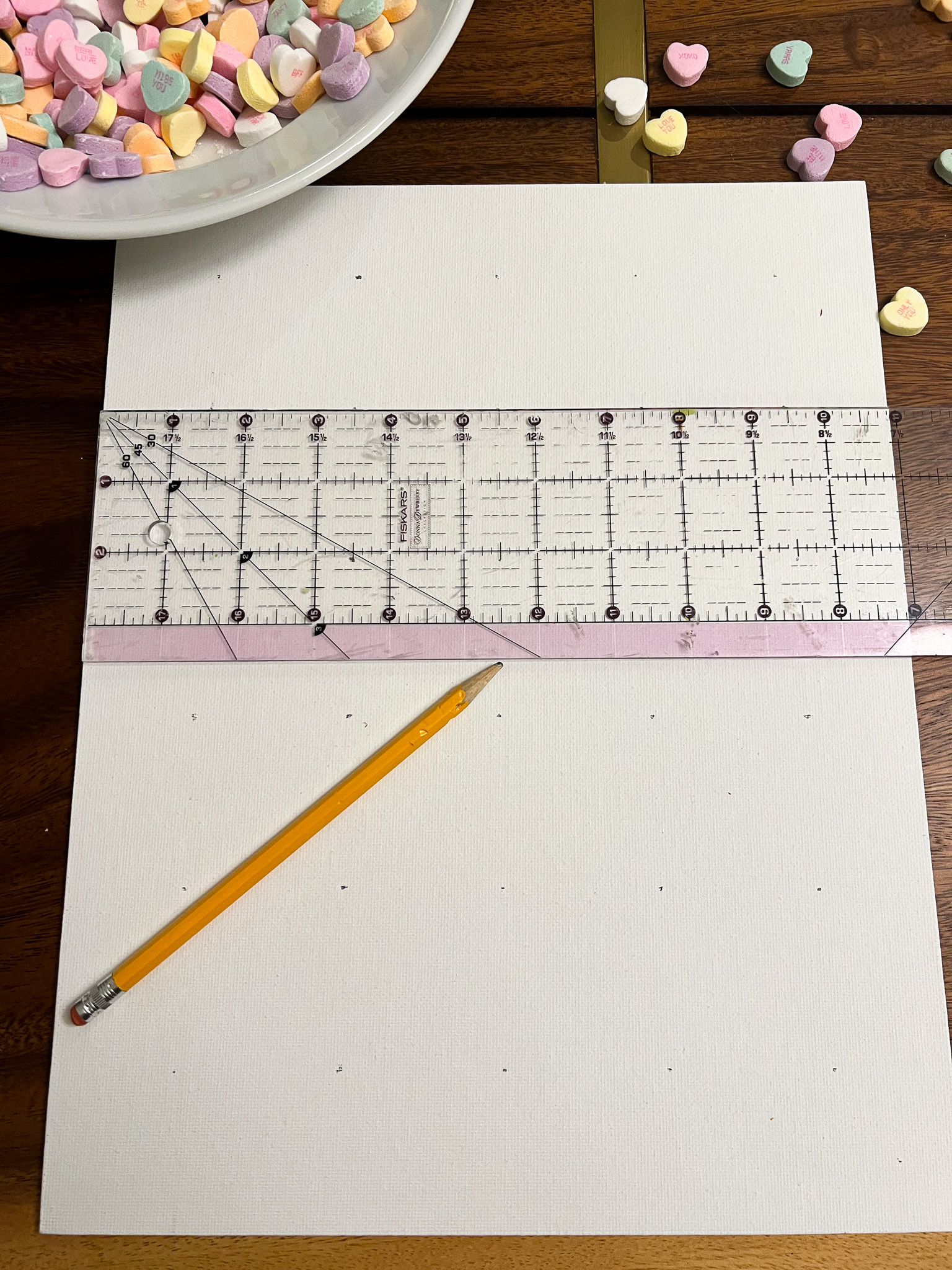 Empty the bag of conversation hearts so you can pick out the best ones to use on your sign. A lot of the hearts had words printed crooked or were illegible.