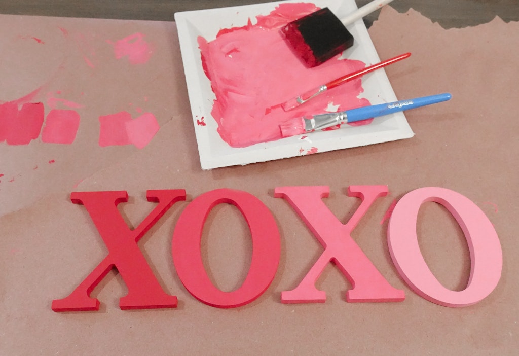 - Letters to paint – We chose XOXO. You could also do LOVE or FAMILY – totally up to you.