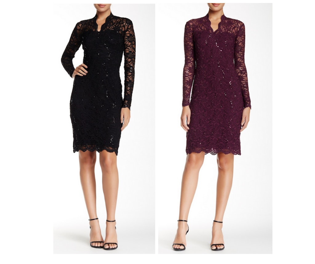 Nordstrom Rack Mariana Long Sleeved Lace & Sequin Dress This budget-friendly party dress is over 60% off coming in at less than $50!!!